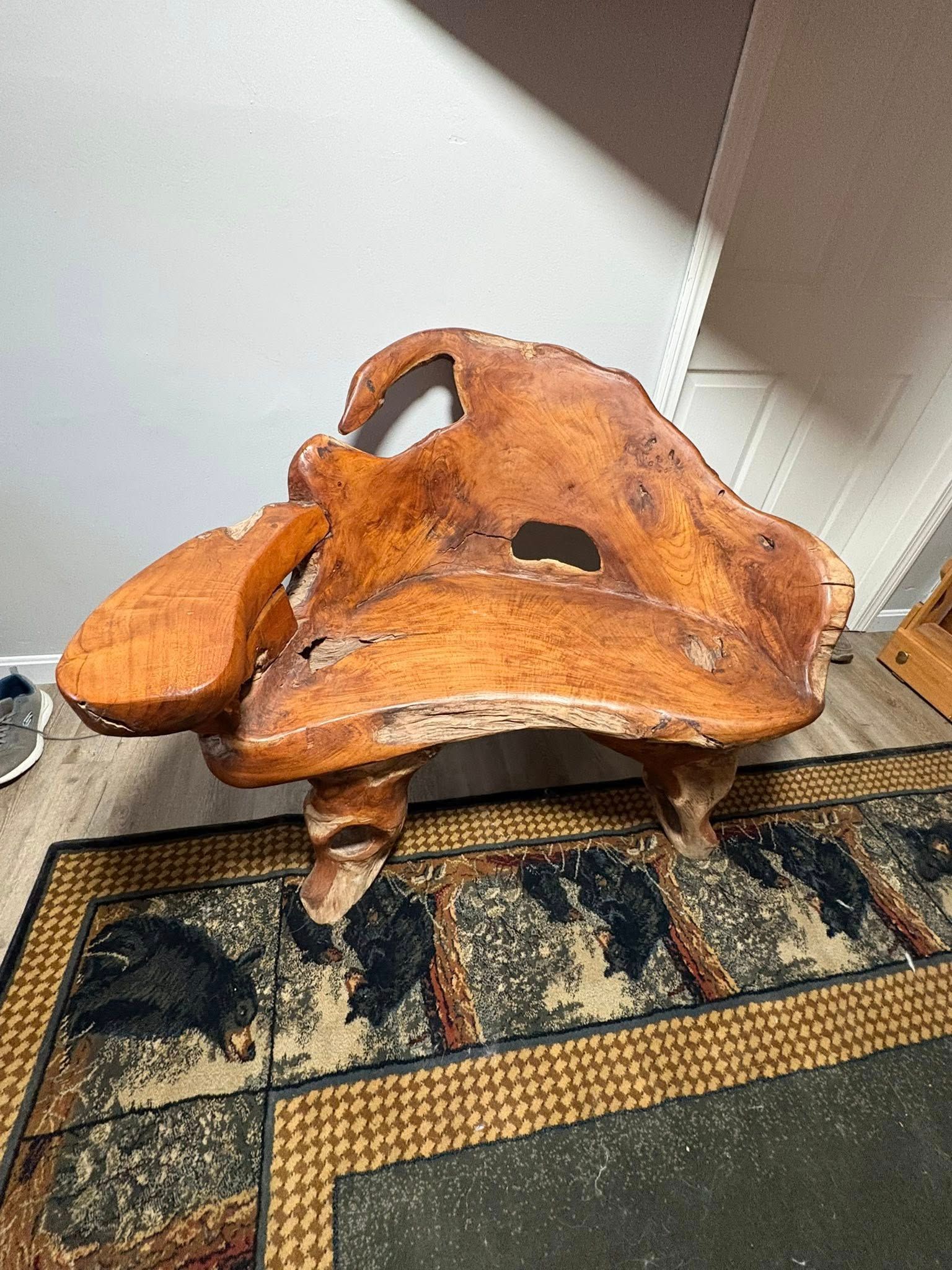 Sculptural Teak Root Bench / Live Edge Rootwood Loveseat w/ Side Table (Organic Modern) $1975 or BO