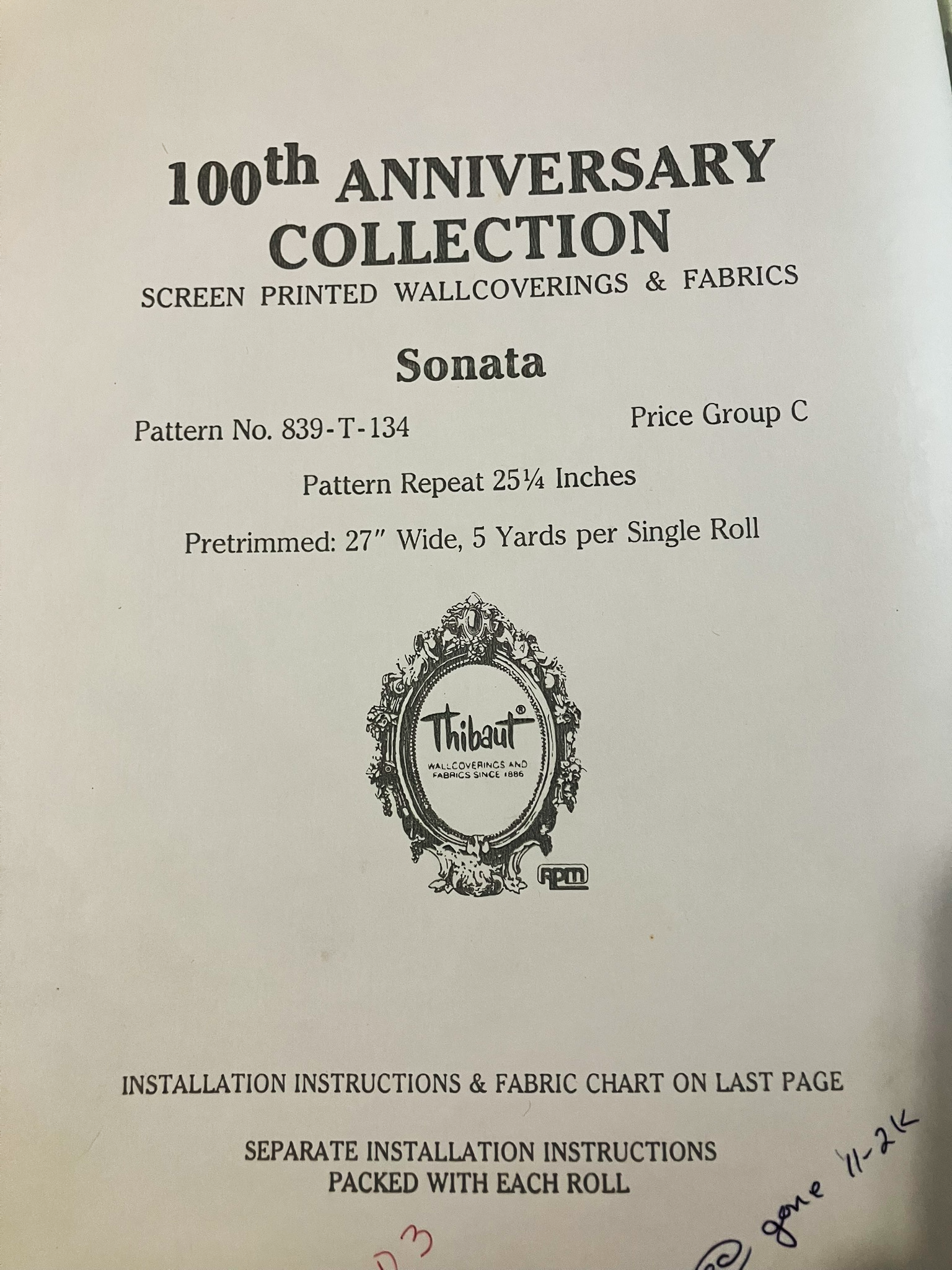 Thibaut Wallpaper “Sonata” 839-T-134 - 100th Anniversary lot (62 rolls)