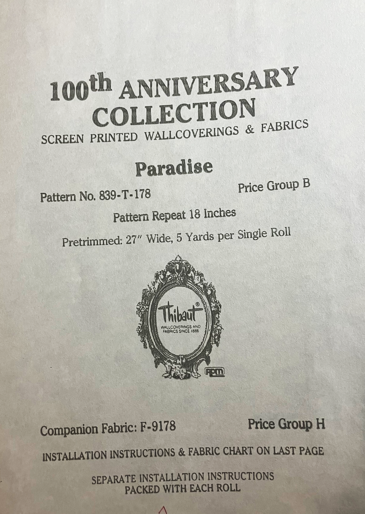 Thibaut Wallpaper “Paradise” 839-T-178 – 100th Anniversary Small Lot (4 rolls)